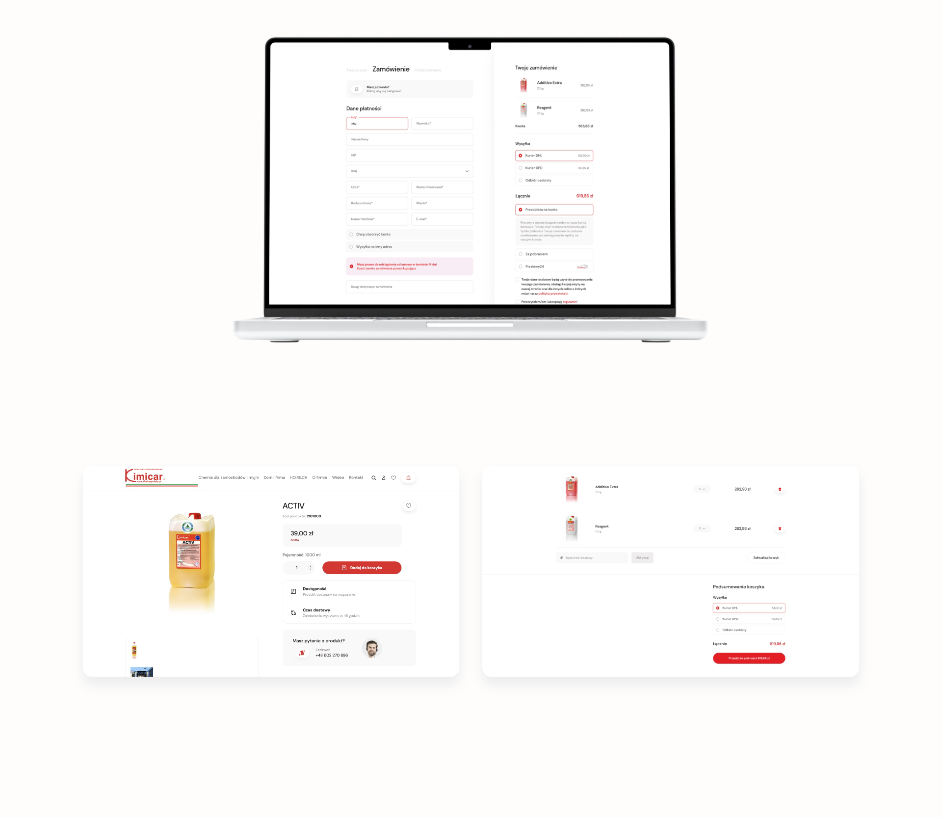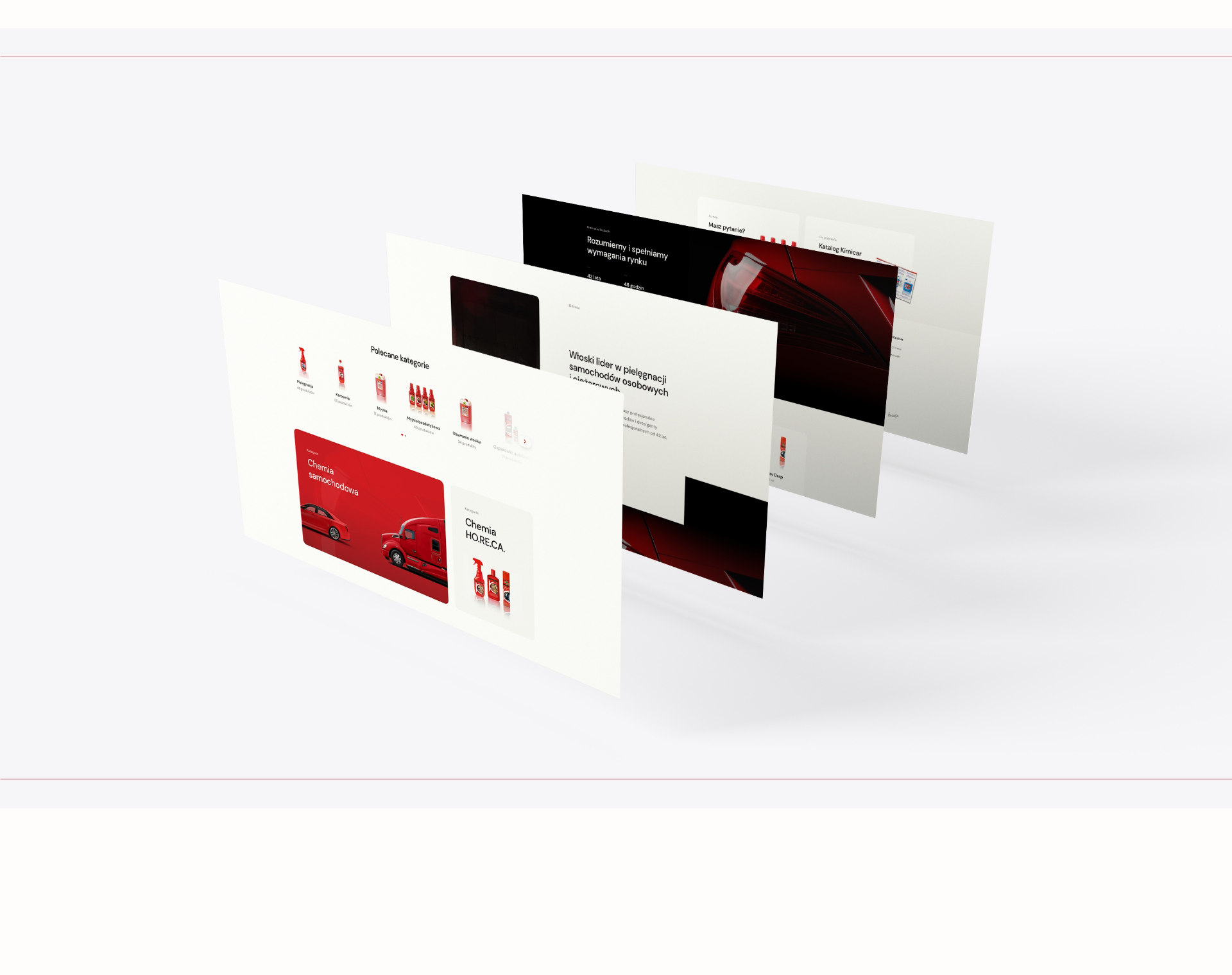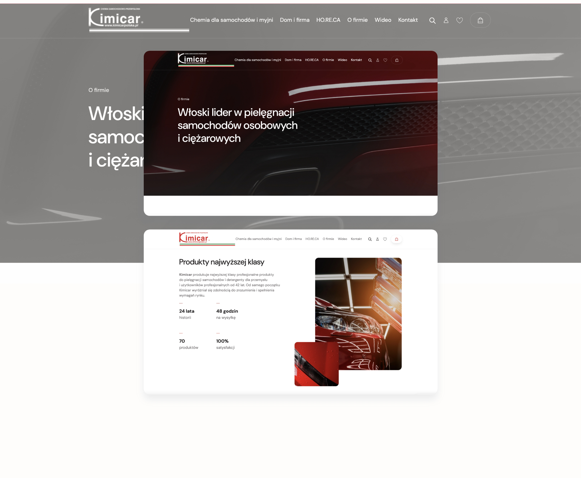 Dla Kimicar, renomowanego polskiego dystrybutora włoskiej marki specjalizującej się w produkcji najwyższej klasy produktów do pielęgnacji samochodów osobowych, ciężarowych oraz chemii przemysłowej, podjęliśmy wyzwanie stworzenia nowej strony internetowej. W projektowaniu serwisu, który został zbudowany na platformie WordPress, głównym zadaniem było wyeksponowanie bogatej oferty Kimicar, podkreślającej ich 43-letnie doświadczenie i pozycję lidera w branży. Celem strony było nie tylko przedstawienie szerokiej gamy produktów Kimicar, ale również podkreślenie ich zastosowania w różnych sektorach – od domu i firmy, po hotele, restauracje i kawiarnie. W tym celu zaprojektowaliśmy czytelny i intuicyjny interfejs, który ułatwia nawigację i pozwala klientom na szybkie odnalezienie produktów odpowiadających ich potrzebom.