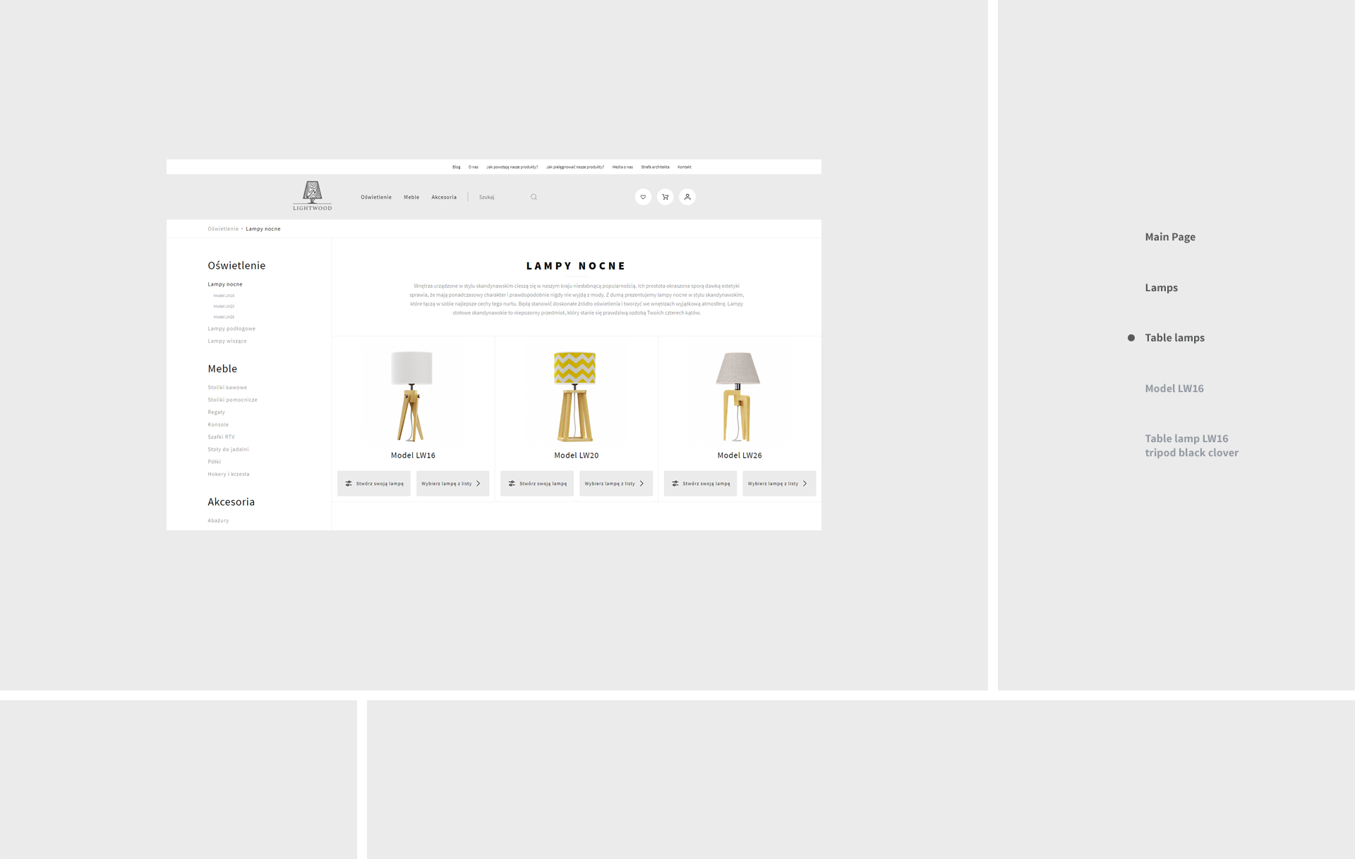 Lightwood to wyjątkowe produkty z polskiego drewna. Lampy, meble i inne akcesoria są wykonywane w lokalnej polskiej stolarni. Klient od 2 lat przymierzał się do współpracy z naszą firmą. W końcu udało się zdobyć zaufanie i rozpocząć realizację.